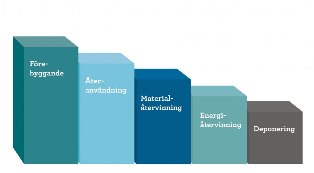 MÅL – Utveckla avfallshanteringen så att vi rör oss uppåt i avfallstrappan och minska den totala mängden avfall som uppstår.